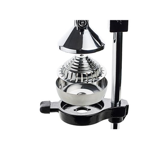 Stačí rozpůlit citrus nebo granátové jablko, nasadit jej na trn z nerezové oceli, dát sklenici pod lis a stlačit páku dolů. Okamžitě budete mít šťávu ve sklenici – bez loupání. Jednoduchý pákový systém zajišťuje maximální výtěžnost. A čištění je ještě jednodušší. Stačí jen otřít lisovací klobouk a opláchnout misku a trn. Trn a misku můžete dokonce mýt v myčce, protože jsou vyrobeny z nerezové oceli.