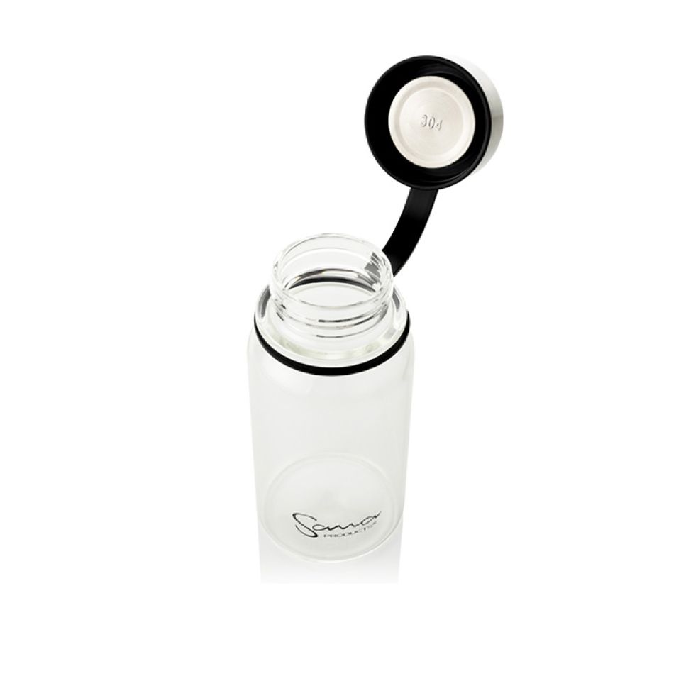 Lahev Sana je vyrobena ze silného, kvalitního borosilikátového skla, které neobsahuje olovo, kadmium, BPA ani ftaláty. Uchovává nápoje a tekutiny (vodu, šťávy, smoothies, pivo, kávu, čaj, omáčky, salátové dresingy, kombuchu, kefír a další) vždy připravené ke konzumaci, ať už venku nebo doma. Každá lahev je vybavena nerezovým uzávěrem s ochranou proti protečení. Silikonové těsnění zajišťuje vzduchotěsnost i vodotěsnost v jakékoli poloze.