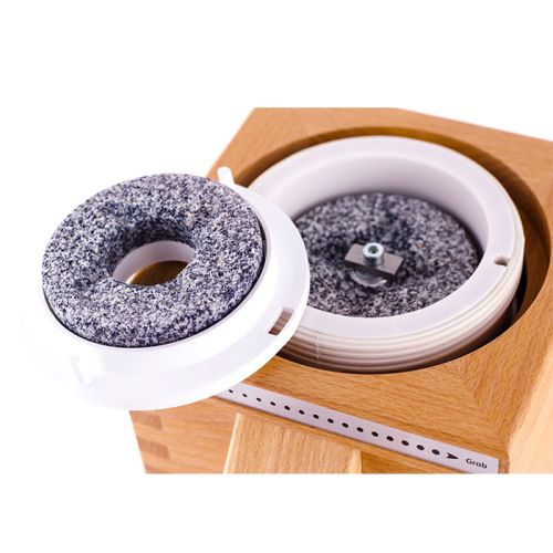 Mlýnek Sana využívá dva mlecí kameny ze směsi korundu a keramiky. Jejich odolnost je tak vysoká, že se dají označit za prakticky nezničitelné. Tyto kameny mají průměr 85 mm a extrémně hrubý povrch, který se neopotřebuje ani po mnoha letech používání. Mletí je rychlé – kilo hladké mouky budete mít do 10 minut a hrubou ještě rychleji.