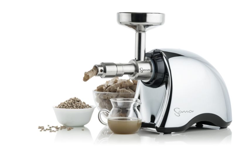 Lis na olej Sana umožňuje domácí lisování oleje. Nasaďte ho na odšťavňovač, zapněte (odšťavňovač) a nasypejte do násypky semínka nebo nasekané ořechy. Téměř okamžitě začne do skleněné nádobky, která je dodávána s lisem, vytékat olej. Teplota oleje zůstává nízká (nepřekročí 42 ˚C), i když lis samotný se při lisování docela zahřeje. Zůstanou tak zachovány cenné látky, aroma i chuť. Vyrobte si každý den tolik čerstvého oleje, kolik potřebujete.